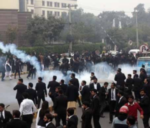 لاہور ہائی کورٹ میں بدھ کو بار ایسوسی ایشنز کا مشترکہ جلسہ عام منعقد ہوا جس میں نائب صدر کامران بشیر مغل اور احسان بھون نے پولیس کی بربریت کی مذمت کی۔