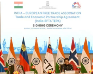ہندوستان اور چار یورپی ممالک کے درمیان تجارتی معاہدے پر دستخط ہوئے ہیں جس کے تحت چار یورپی ممالک ہندوستان میں 100 بلین ڈالر کی سرمایہ کاری کریں گے۔