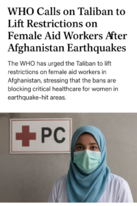 The World Health Organization (WHO) has urgently appealed to the Taliban to lift restrictions on female aid workers in Afghanistan, highlighting the devastating impact these rules are having on humanitarian relief efforts in earthquake-affected regions.